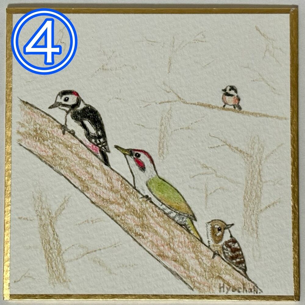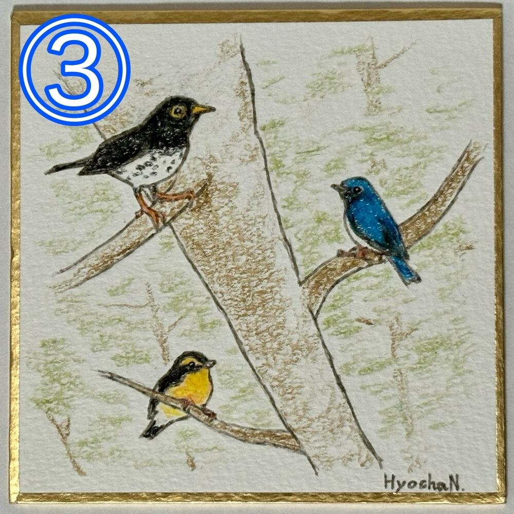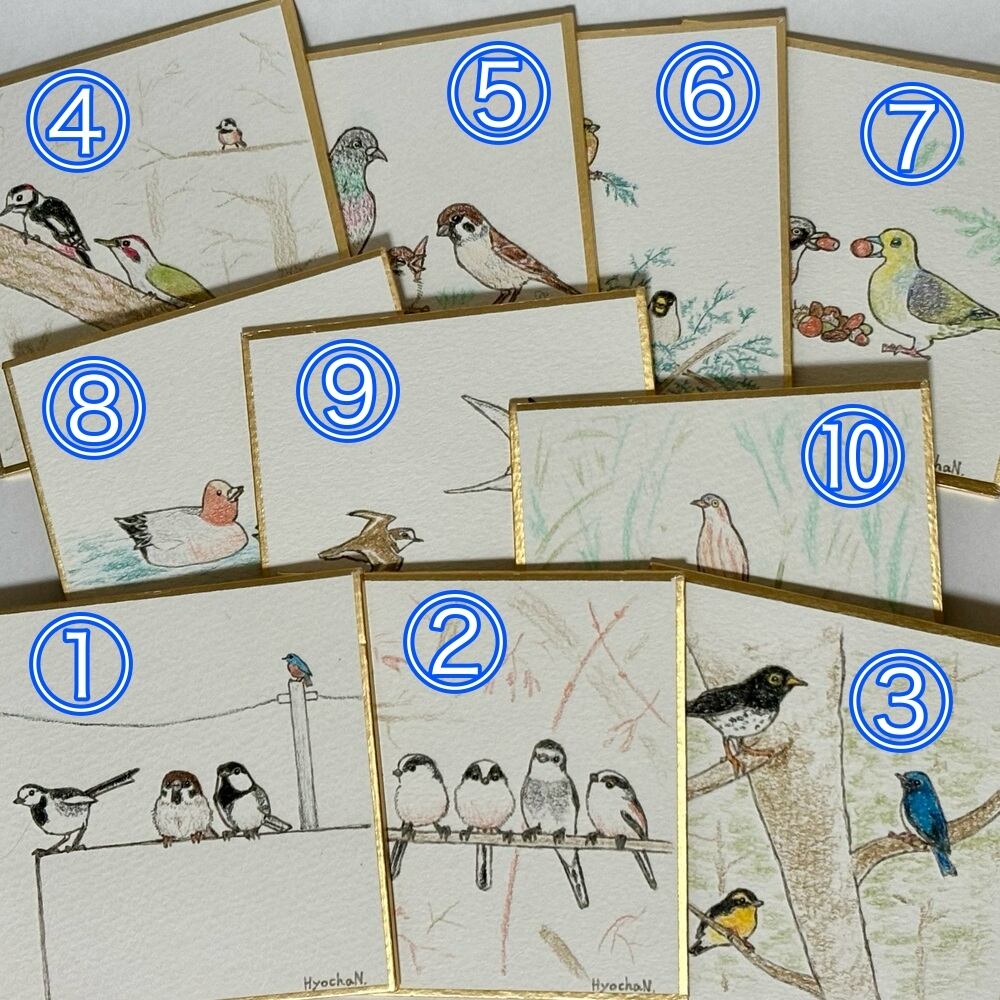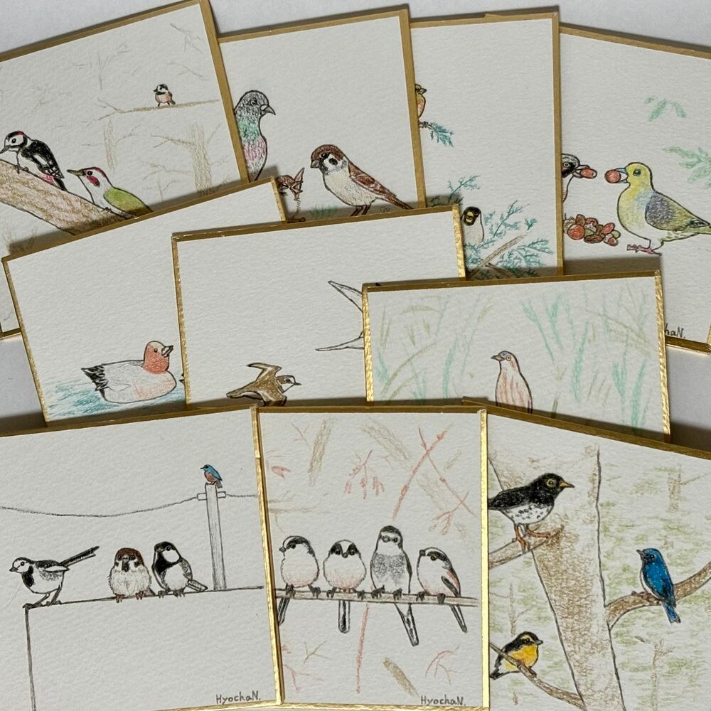 バードウォッチングをしていてよく一緒に見かける鳥達や、好みが似ている鳥達を合わせて描いてみました。